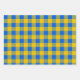 Ukrainian themed blue and yellow wrapping paper set represents Ukraine flag-inspired set of buffalo plaid, striped paper, and polka dot gift wrap for Ukraine Independence Day or supporting Ukraine on any other day. A perfect yellow and blue gift wrapping paper to celebrate Ukrainian victory, and as patriotic gesture for any occasion!