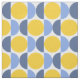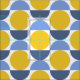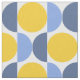 This bold fabric features modern geometric circles and half circles in bright shades of yellow and blues.