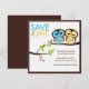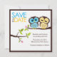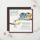 These adorable save the date announcements feature a cute vector illustration of a couple of owls perched on a tree branch. Many colour schemes available at our store and more available by request.