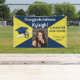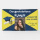 This is an outdoor grade vinyl banner with metal grommets. It can be fully personalised with the student's photo, name, message, class year, and town & school name. It includes matching cap and diploma artwork, which may also be customised.