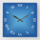 Blue Angular Ombre Arabic or Roman Numeral Square Wall Clock