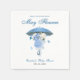 These "Blue April Showers Bring May Flowers" baby shower napkins feature a soft blue background with a charming umbrella in the centre, surrounded by delicate flowers in shades of blue. Raindrops gently fall around the umbrella, adding a spring-inspired touch. Perfect for adding a whimsical, seasonal feel to your baby shower celebration.
