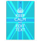 Your personalised Keep Calm saying on a vibrant aqua blue decor. A personalised Keep Calm style saying on a one of a kind gift. Humourous or whimsical try on your creative words on two editable lines of text. Remember to use CAPITAL letters for best results.