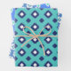 Blue, Aqua & Mint Tribal Diamond Ikat Pattern Wrapping Paper Sheet