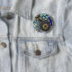Blue aqua steampunk gears, cogs, clock faces print 6 cm round badge