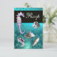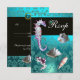BLUE AQUAMARINE DAMASK BEACH WEDDING RSVP CARD