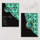 BLUE AQUAMARINE DAMASK MONOGRAM ,turquase Business Card