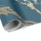 Blue Aquatic Teal Gold Marble Sand Glitter Spark Wrapping Paper