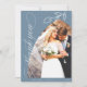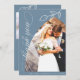 Dusty Blue Arch Botanical Leaf & Elegant Calligraphy Wedding (Two Photo) Thank You Card.