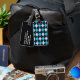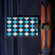 Stylish luggage tag with a classic blue, black, and white argyle pattern, on the front. The back of the tag is done in solid black, with white custom text. Personalise the text to suit your needs. Matching travel products are available.