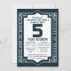 Blue Art Deco 5 Year High School Class Reunion Invitation