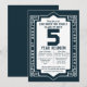 Celebrate all the fun memories with this navy blue art deco inspired styled "Class of" "5 Year High School Reunion" Invitation. Includes spot for 2 days of events.