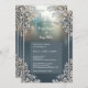 blue art deco ornate frame wedding invite