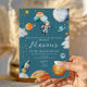 This cheerful space invitation features an adventurous astronaut floating with watercolor planet balloons against a bright blue sky. Perfect for a first trip around the sun celebration, it brings a fun, whimsical cosmic vibe that’s ideal for little galaxy explorers.