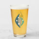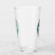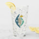 This fabulous mid century modern drinking glass features boomerangs, circles, and diamond shapes in a combination of the colours turquoise, blue, tan, gold, and black.