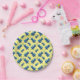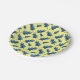 Blue leaves pattern over a light yellow lemon background. The background colour can be changed.