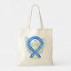 Tote bag features blue awareness ribbon art. The blue awareness ribbon colour means support for ALS, Free Speech, Foster Care Awareness, Colon Cancer, Child Abuse Awareness, Drunk Driving Awareness, Education, Arthritis, Huntington's Disease, Human Trafficking, Stop Bullying, and Save the Music to name a few. Let the blue awareness ribbon help support awareness for these causes!
