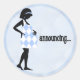 This sticker coordinates with announcements, baby shower invitations & postage stamps found in my shoppe. The design is of a mother to be in silhouette with her hand on her baby bump. She is wearing a blue & white dress and is on a blue mottled background. Perfect for adding that final touch by sealing the envelope.