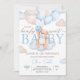 Blue Baby Bear Balloon Baby Shower Invitation