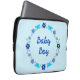 This awesome laptop sleeve features a digital art image of a group of flowers and butterflies, each a shade of blue to represent a baby boy. The flowers include Dahlias, water lilies, forget me not and Chrysanthemums.