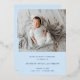 Photo birth announcement card featuring a simple design with one square picture on the front with baby's name and his birth stats in real silver foil over a blue background. The back side has a photo collage with two horizontal pictures and your custom message. This simple birth announcement card is a great way to announce the arrival your newborn baby boy.