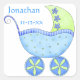 Blue Baby Buggy Boy Name Birth Date Announcement Square Sticker