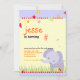 Cute little purple baby elephant for a birthday boy party invitations.. Embellished with flags and polka dot, stars. Background + accent colours are customisable.
