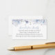 A book request insert card for baby shower. Featuring a watercolor blue flowers with poem: "ONE SMALL REQUEST, WE HOPE NOT TOO HARD PLEASE BRING A BOOK INSTEAD OF A CARD THEY'LL CHERISH THE BOOK, WELL LOVED OR BRAND NEW PLEASE SIGN THE INSIDE WITH A MESSAGE FROM YOU!"