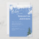 Baby Shower Invitation. Information on front and back. Snow. Winter trees. Baby it's cold outside. White and Blue background. White text.