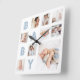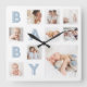Blue Baby Letters Newborn Baby Photo Grid Collage Square Wall Clock