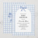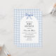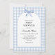 Invite your loved ones to shower the parents-to-be with love and joy with this Blue Baby Shower Invitation. Featuring a charming arch design adorned with a delicate blue ribbon and classic blue-and-white plaid accents, this minimalist yet elegant invite is perfect for celebrating a baby boy in style. With its timeless blue tones and soft details, this invitation sets the perfect tone for a heartwarming and memorable gathering. Whether you're hosting a cosy get-together or a grand celebration, this design is ideal for welcoming a little bundle of joy! BBS906