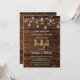 This elegant invitation features glowing string lights and mason jars with a rustic wood background.