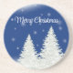 Blue Background With Withe Christmas Tree Coaster