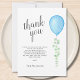 This boy's Baby Shower Thank You Card is decorated with a watercolor blue balloon and green eucalyptus.