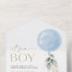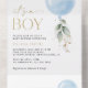 Invite friends and family in style and set the tone for your special day with this charming baby shower invitation. Design features blue balloon with eucalyptus leaves on white background.