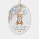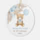 This adorable Christmas ornament features a cute teddy bear holding a dusty blue balloon. It also showcases some trendy bohemian elements in muted brown, blue and cream colours. Personalise the ornament with your baby's details and if you want to further re-arrange the style and placement of the text, please press the "Click to customise further" button.