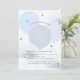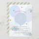 This cute girl's birthday party invitation card features balloons in baby blue shades with clouds and faux gold glitter stars on light blue background. The reverse side features faux gold diagnol stripes on light blue background. Personalise it for your needs. You can find matching products at my store.