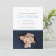 Use this sweet template to invite people to your baptism celebration for your baby with two spaces for photos. Lovely white, grey, and blue colour scheme. All text is customisable.