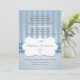 An elegant baptism invitation with blue stripes, a decorative ribbon and tiny, polka dots. Perfect for your most formal celebration.