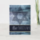 Blue design star of David and dark blue accent bar with Bar Mitzvah in white font. Easily add your own text inside.