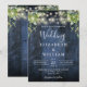 Blue Barn Wood String Lights Greenery Wedding Invitation