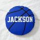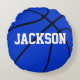 Blue Basketball Custom Round Throw Pillow: A round throw pillow with a custom text box for you to type in the name of your favourite basketball player, team name, jersey number, or any other text. Click the "Customise" button to change the font type, size or colour. These make great gifts for basketball players and fans, especially for those with blue team colours!