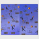 pictured on a blue gradient background are basketball players, hoops, balls, numbers, logos, in a colourful basketball pattern