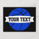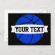 Blue Basketball Team Name or Custom Text Postcards: Make your own personalised blue basketball postcards by typing your team name, mascot, school name, slogan or anything you want in the custom text box. You can also click the [Customise] button to change the background colour (currently set on black), or adjust the font style, size and/or colour. These work great as invitations or reminders for basketball camps, parties, tournaments or other events.