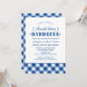 Gather the wedding party with this crisp and classic rehearsal dinner barbecue invitation in bold royal blue. Mixed script and western-style "Barbecue" typography pair with a blue gingham border for a preppy, polished take on a casual celebration. All names, dates, and details are fully editable. A perfect fit for a backyard or outdoor wedding rehearsal barbecue.