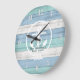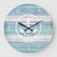 Blue Beach Wood Nautical Stripes & Anchor Large C Clock