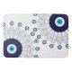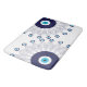 Bohemian Mediterranean blue, aqua and white modern evil eye mandalas patterned bathroom mat