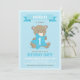 Adorable Blue Birthday invitation featuring a cute baby bear holding a blue star that shows the age the child is turning. This would make a great invitation for a boy's first birthday or any age. This invitation also includes a patterned back side. Personalize this birthday invitation by replacing the placeholder text in the template to add your information. For more options such as to change the font and it's size click the "Customize it" button.