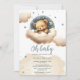 Blue bear on clouds baby shower invitation