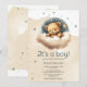 Welcome your little prince in style with this adorable baby shower invitation featuring a charming watercolor baby bear resting on soft creamy clouds surrounded by twinkling stars. Perfect for an “It’s a Boy!” baby shower, this sweet and dreamy design sets the tone for a heartfelt celebration. The soothing pastel hues and delicate details make it ideal for creating magical memories for the mum-to-be.